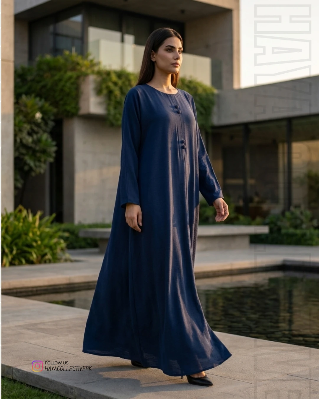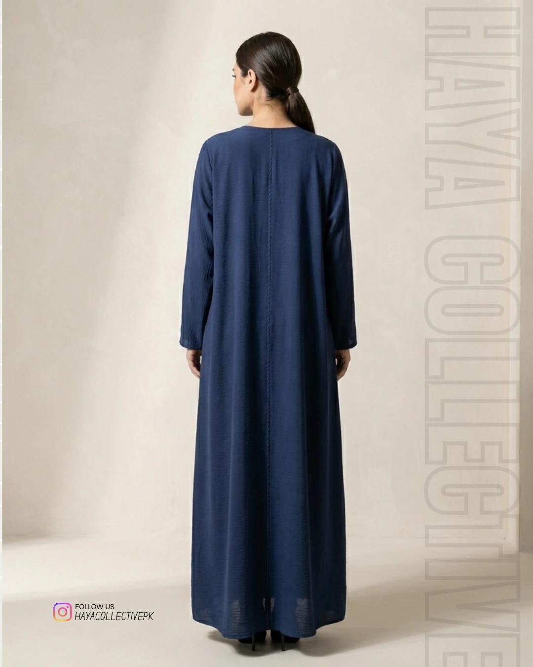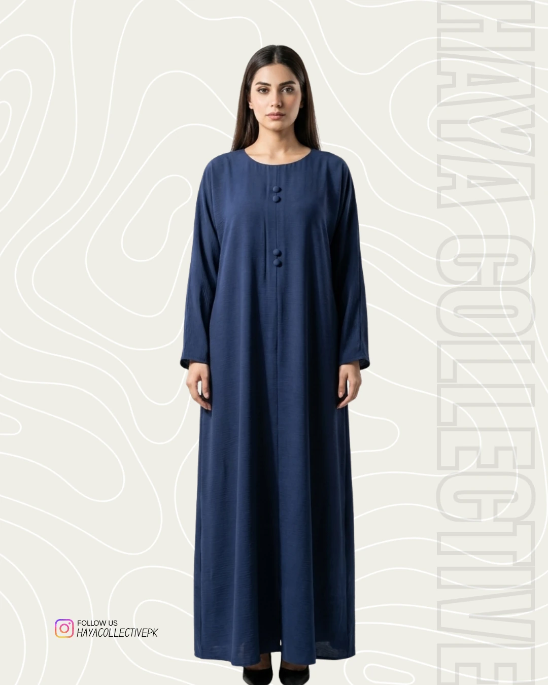 Step into effortless elegance with this navy blue silk abaya from Haya Collective. Designed for women who value both style and modesty, this piece is a perfect blend of modern minimalism and timeless grace.