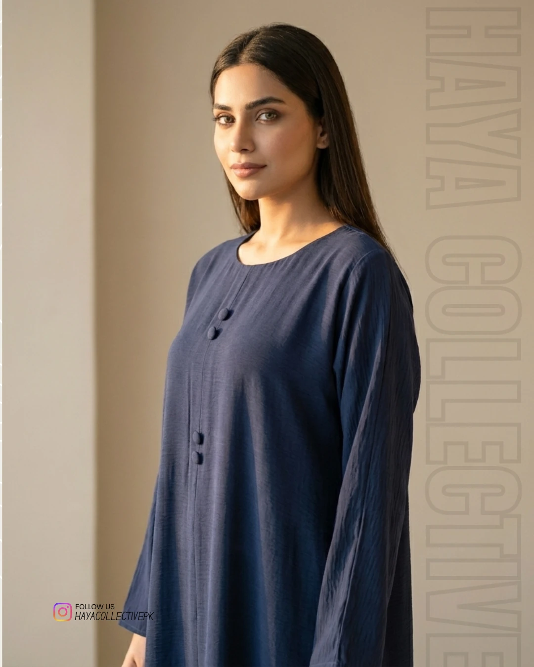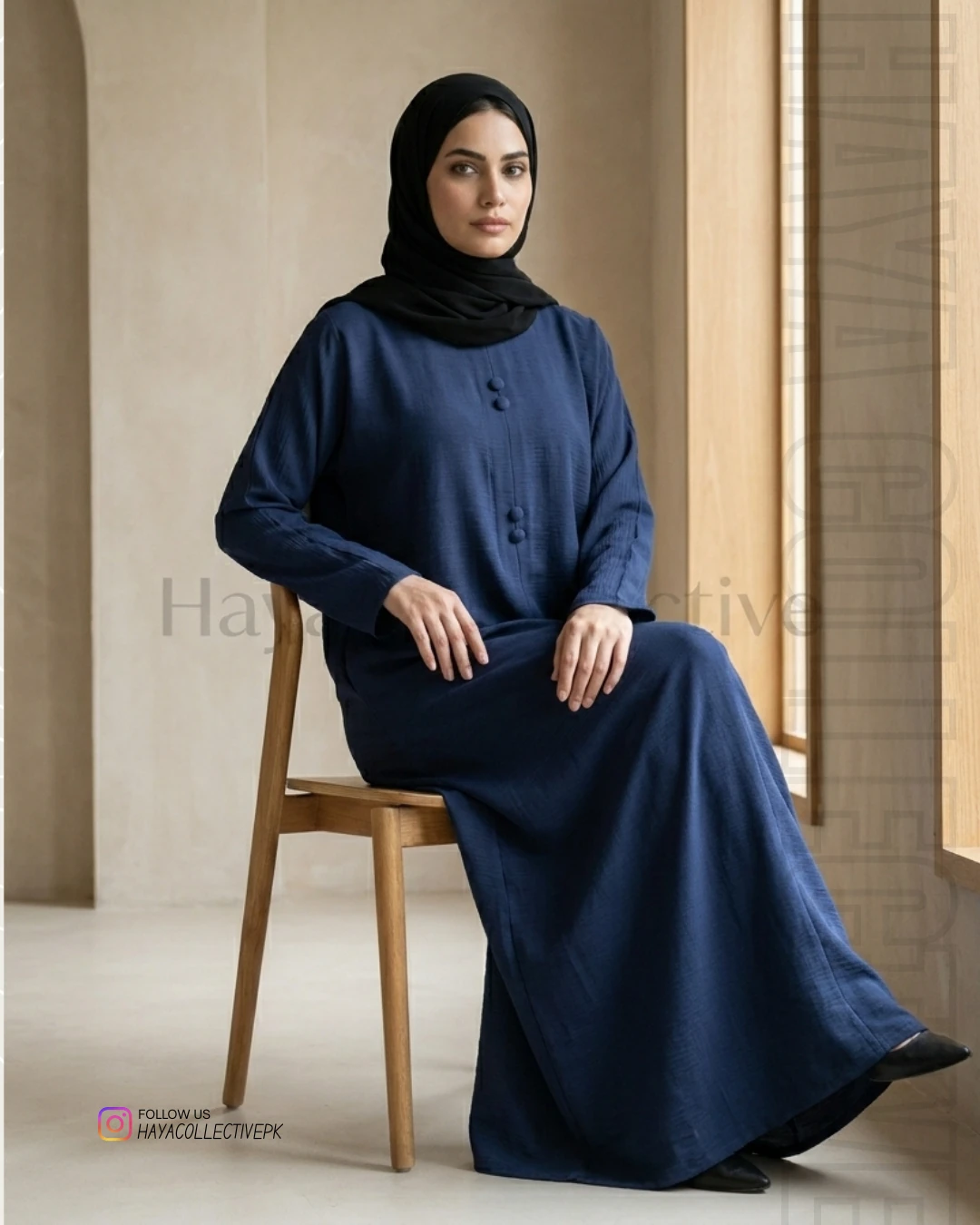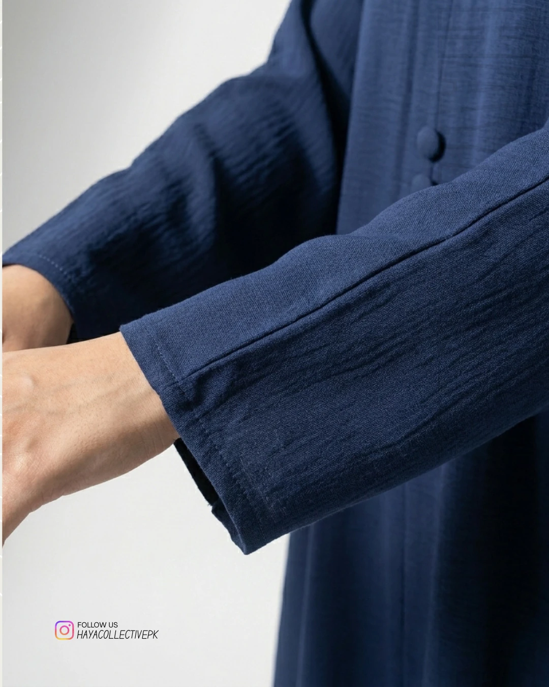 Step into effortless elegance with this navy blue silk abaya from Haya Collective. Designed for women who value both style and modesty, this piece is a perfect blend of modern minimalism and timeless grace.
